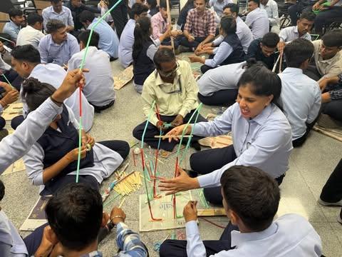 Teams compete to construct the tallest and most stable “tower” using everyday materials like straws, paper, tape, and string — mirroring the ambition of building the Burj Khalifa. -